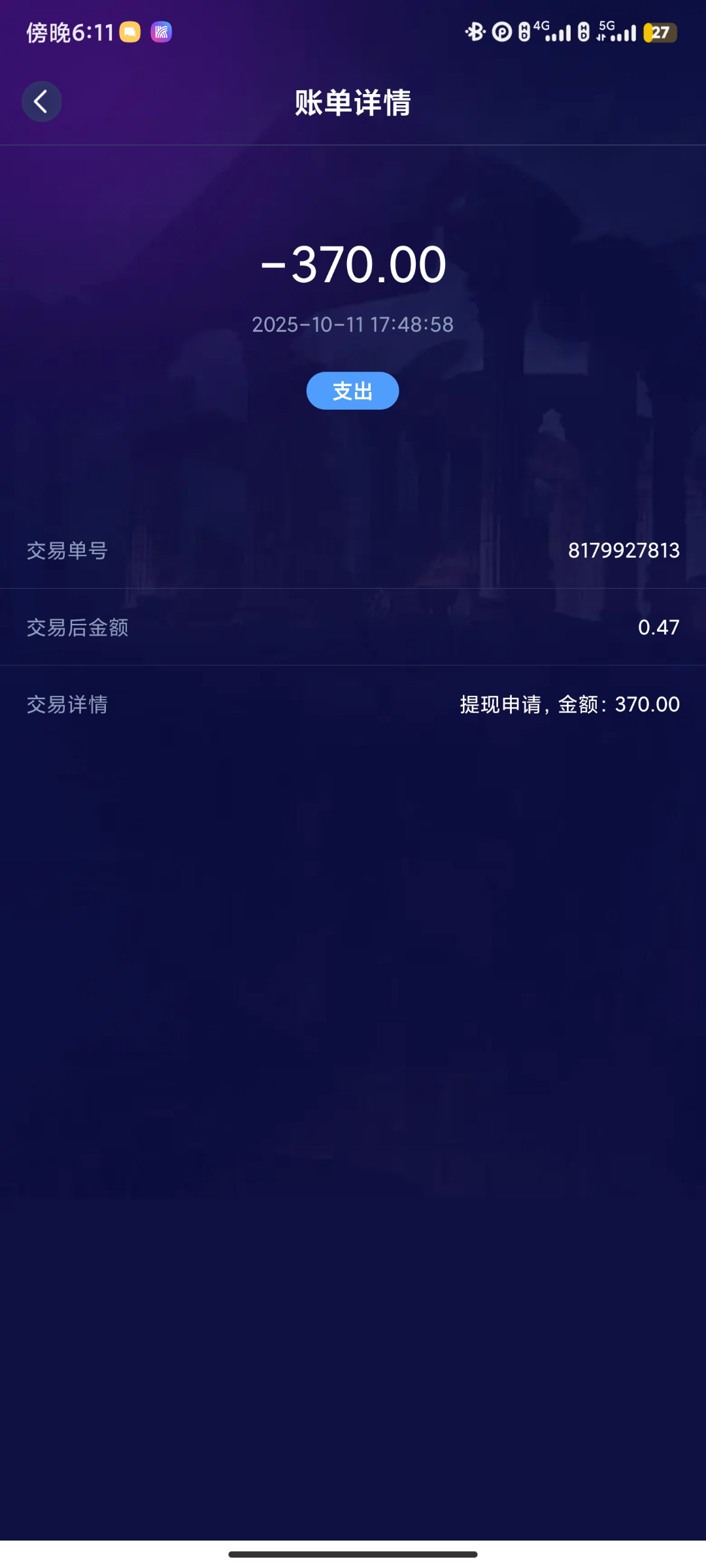 昨晚论坛看到的,总共充了6次以上5600,一晚上干到 6,余额有3000,不想打了,现在提会不会黑