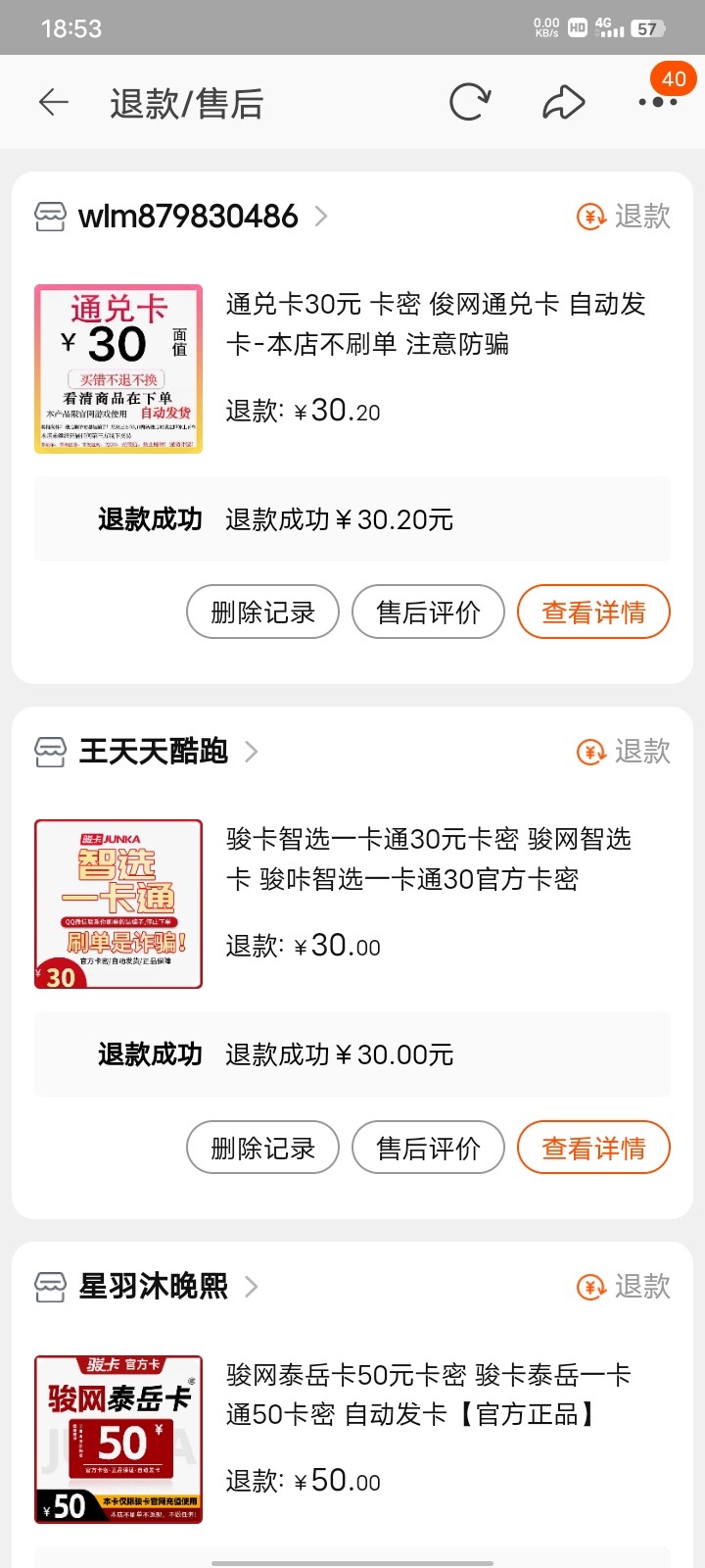 我一次没退过,昨晚申请退,商家不给退,让平台介入,人家商家有充值卡已用的截图,我没有截图发,不给退啊