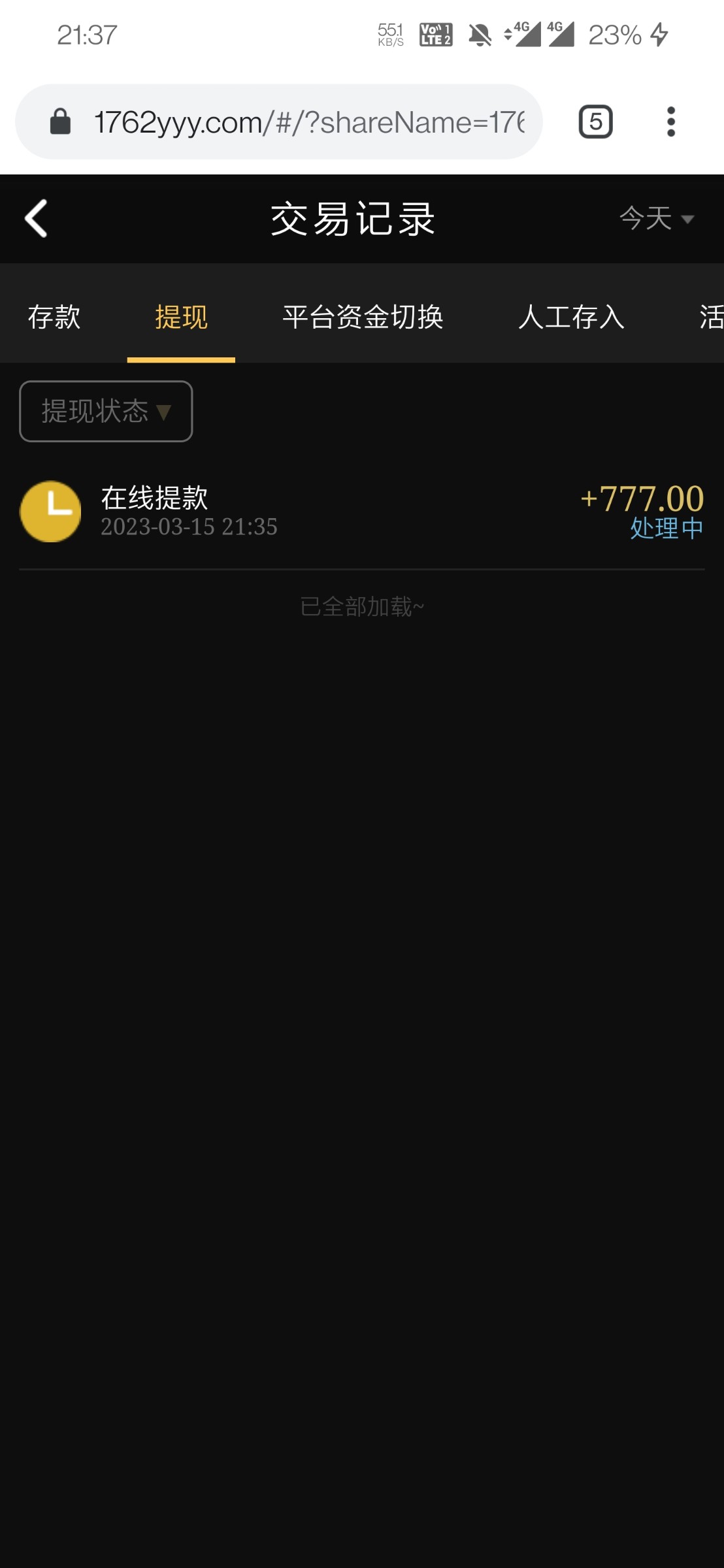 又提了300到账,哈哈,提两百退回来了,打上300到了