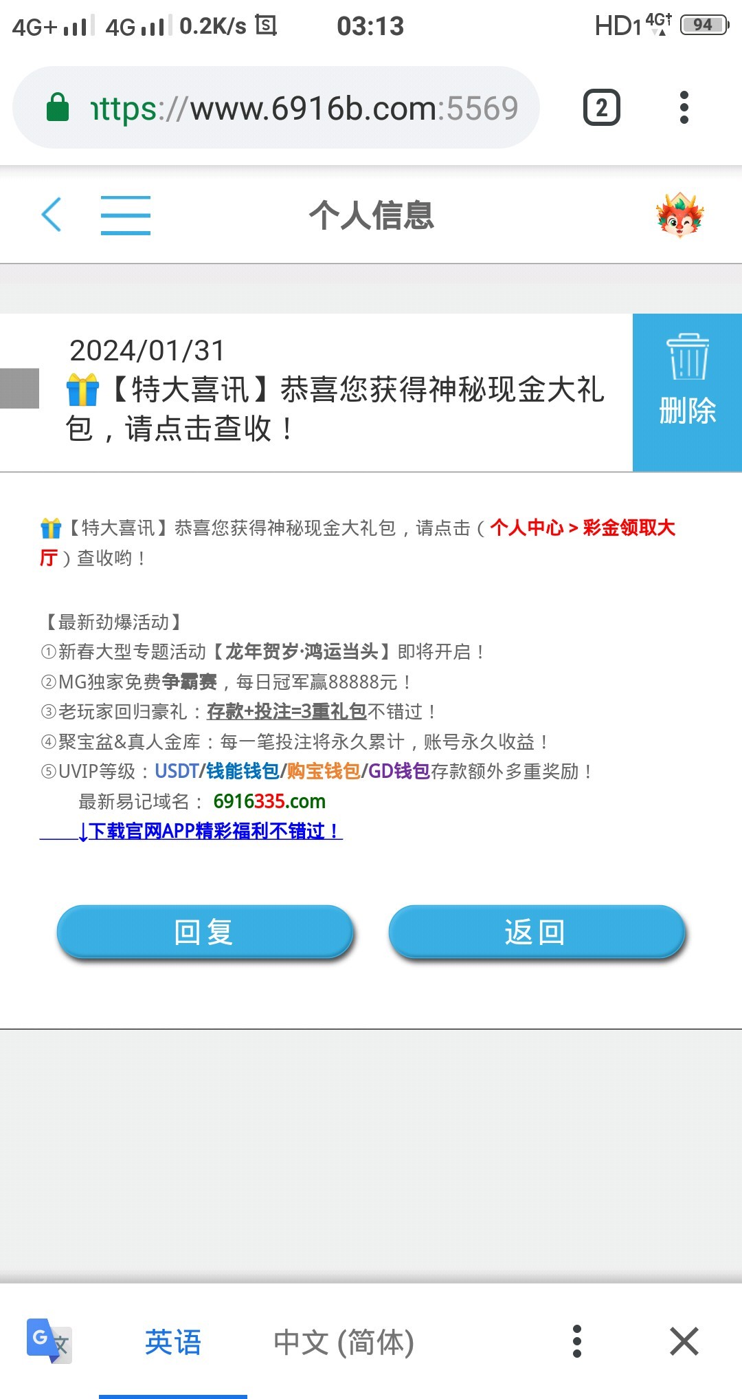 盛大私信送了12毛