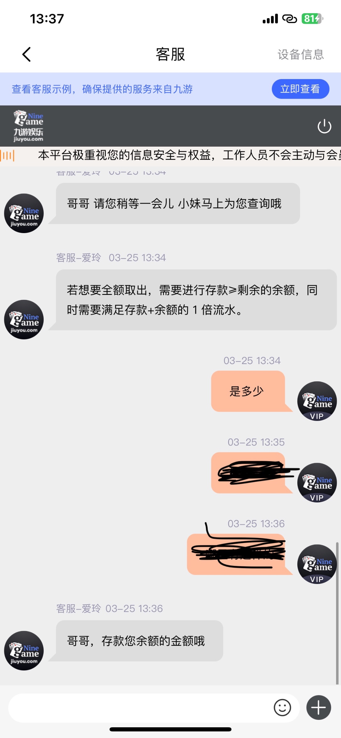 黑台,100都不给出,还封号