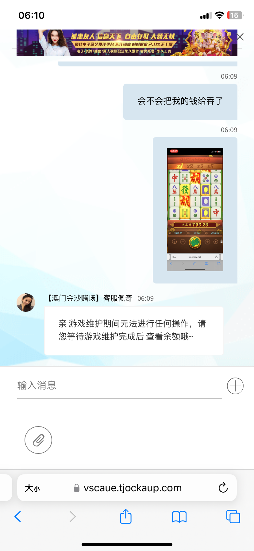 网站6:00维护,我6点03还在麻将里免中免里转,2爆了800,返回才知道网站维护了,真怕他给我吞了