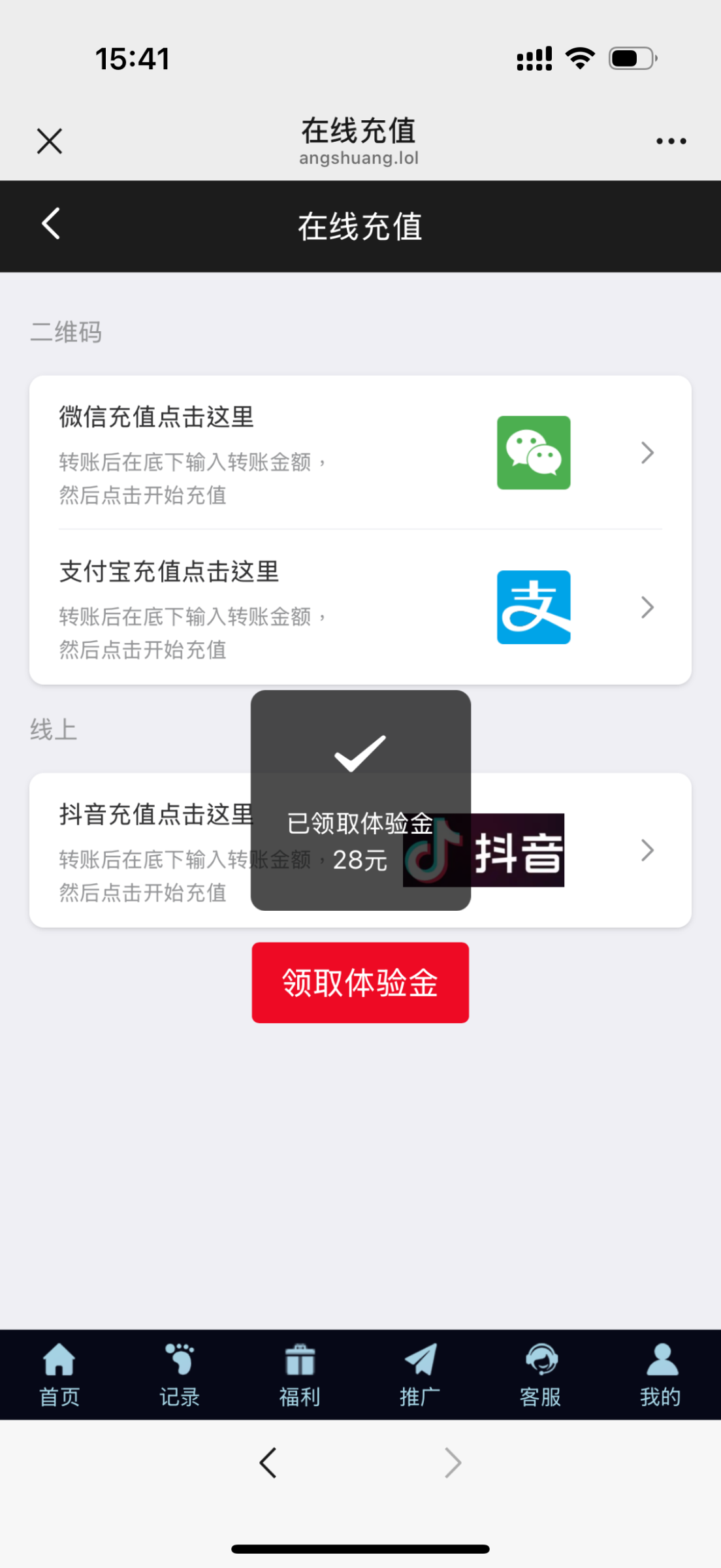 微信扫码一键登录,充值里领取体验金秒送28!