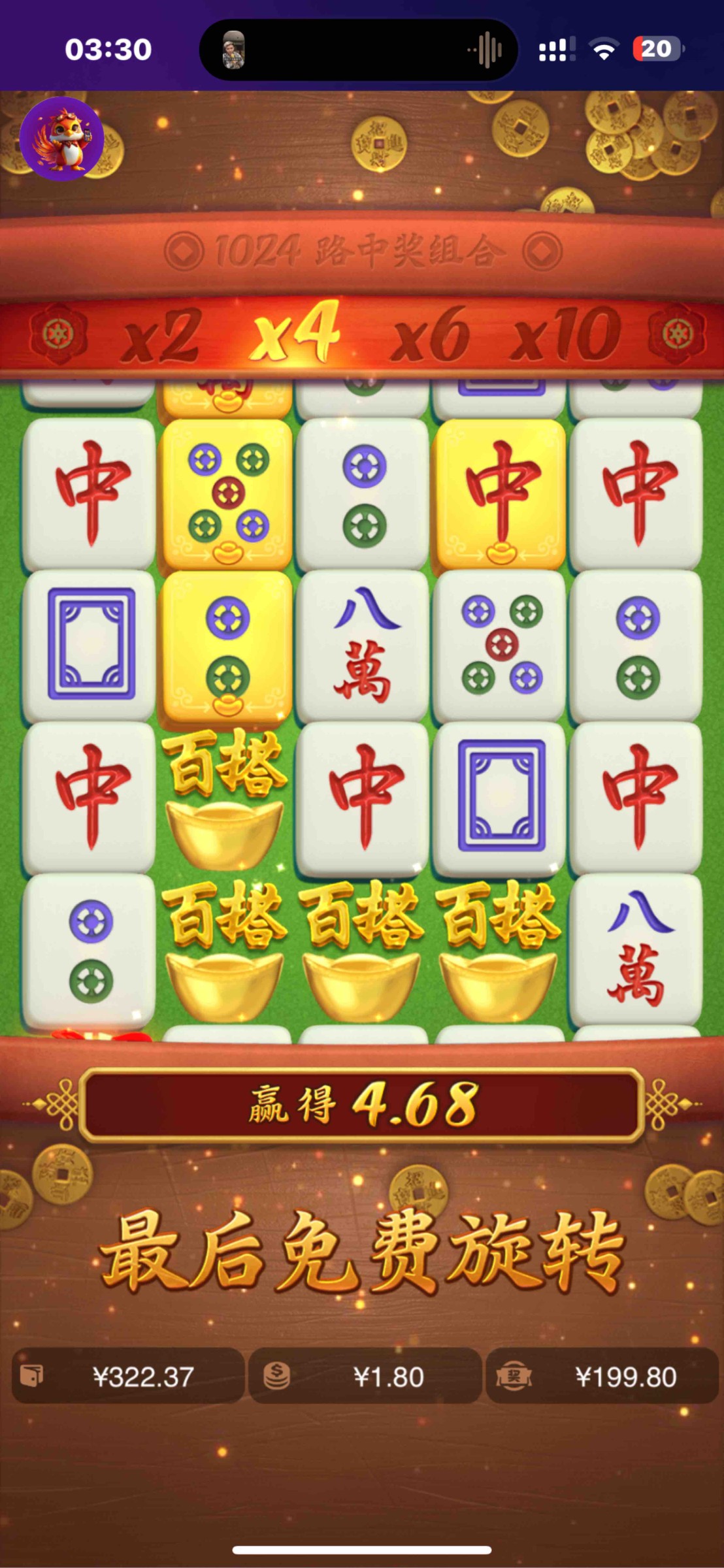 100上2.1k 剩54块连进两次胡