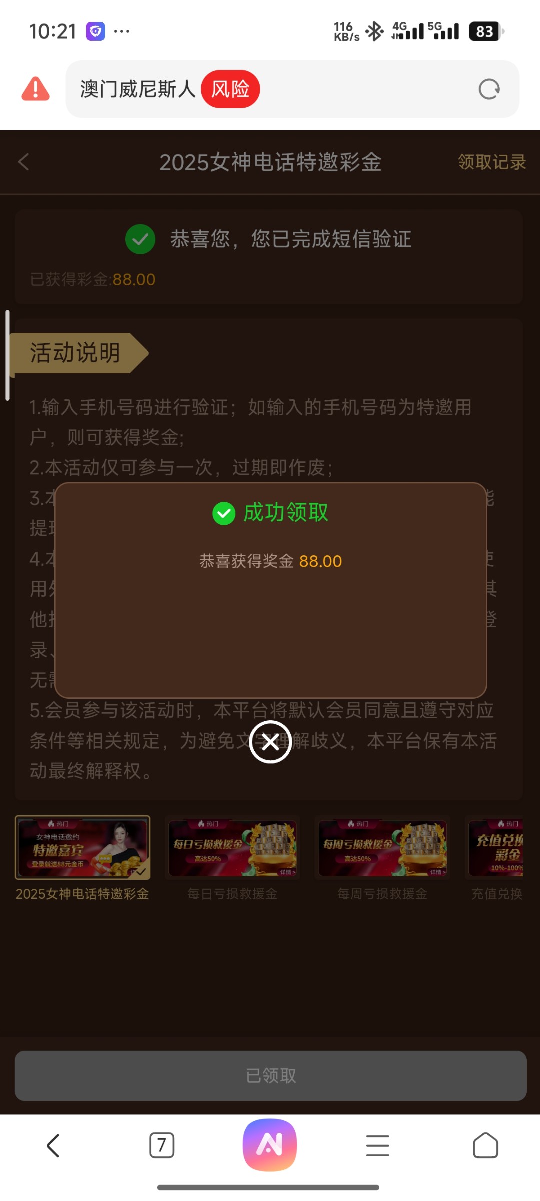 之前老哥们发的时候去碰,结果不是特邀,今天看群里老哥碰到了又去了一次,领了88