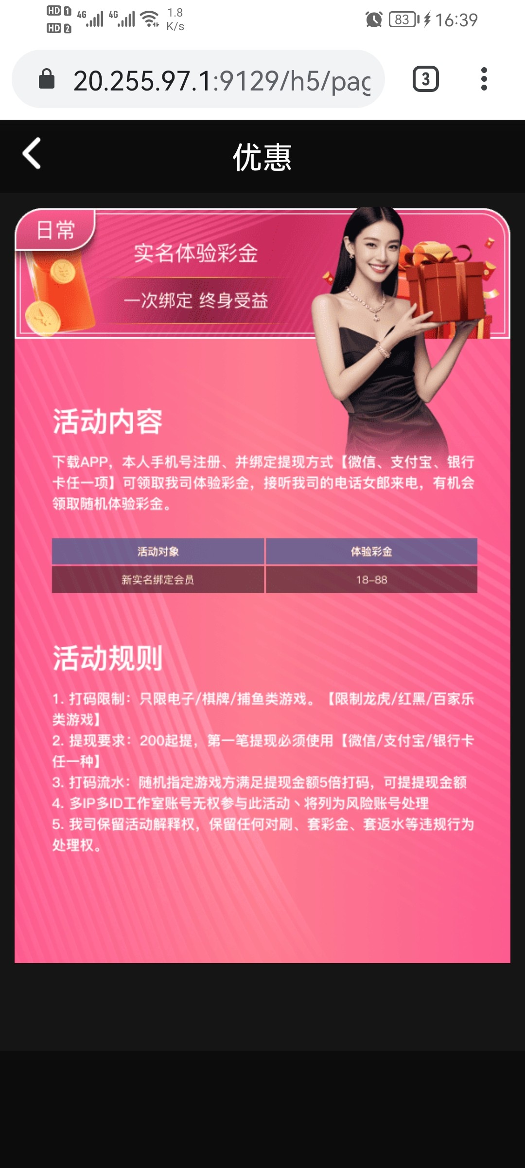 短信链接:【大连瑞佳运网络】盛夏狂欢,为回馈新老用户,登陆注册可领专属VIP权益,戳 czentu.com/0wro 拒收请回复R a333.app 送18 200提,