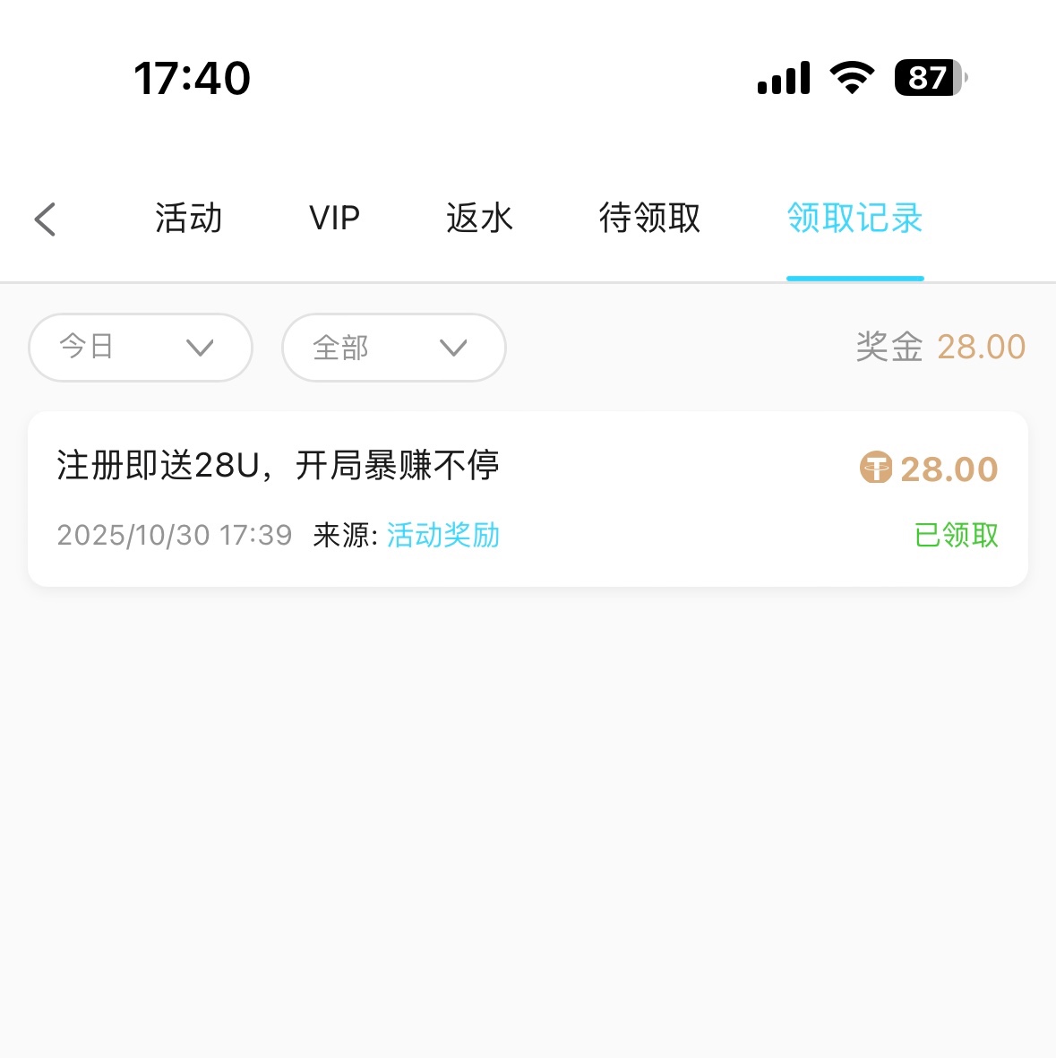 我的u地址,那是相当靠谱,28u到账