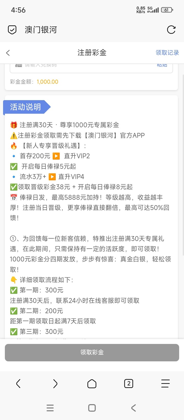 30天以后才给注册彩金 还是分四期 666