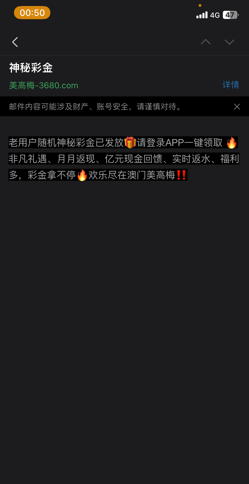 澳门美高梅3680 特邀发短信送18。前两天发了短信没有送的上去看看 我也是发了没有送 我刚刚看到邮箱发来信息登录上去看到送了18 网址3680.com 前两天发时候没有送 今天看到邮箱上去送了