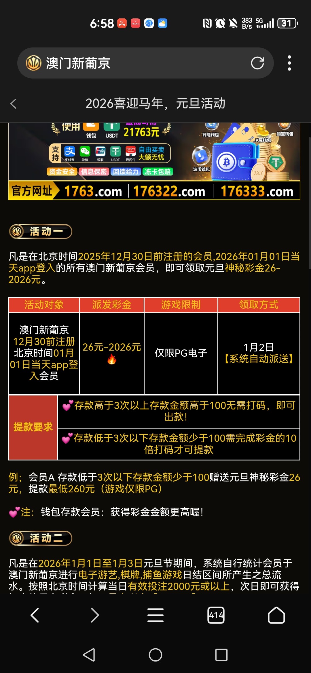 元旦当天有app登录的,明天下午6点前保底26块钱彩金就会派发,之前帖子发早了很多人说没有,再次提醒你们一下
