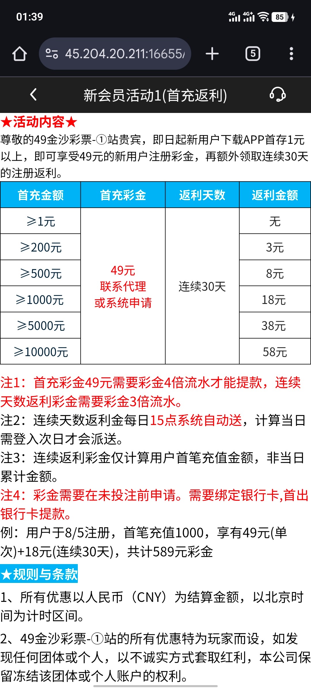 新用户 注册下载app充值1+自助申请49元彩金 彩金满4倍流水 即可出