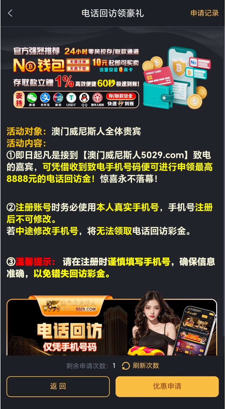 接到回访电话登录平台账号才有这个 活动入口 漏接电话的 可以自行登录查看活动入口