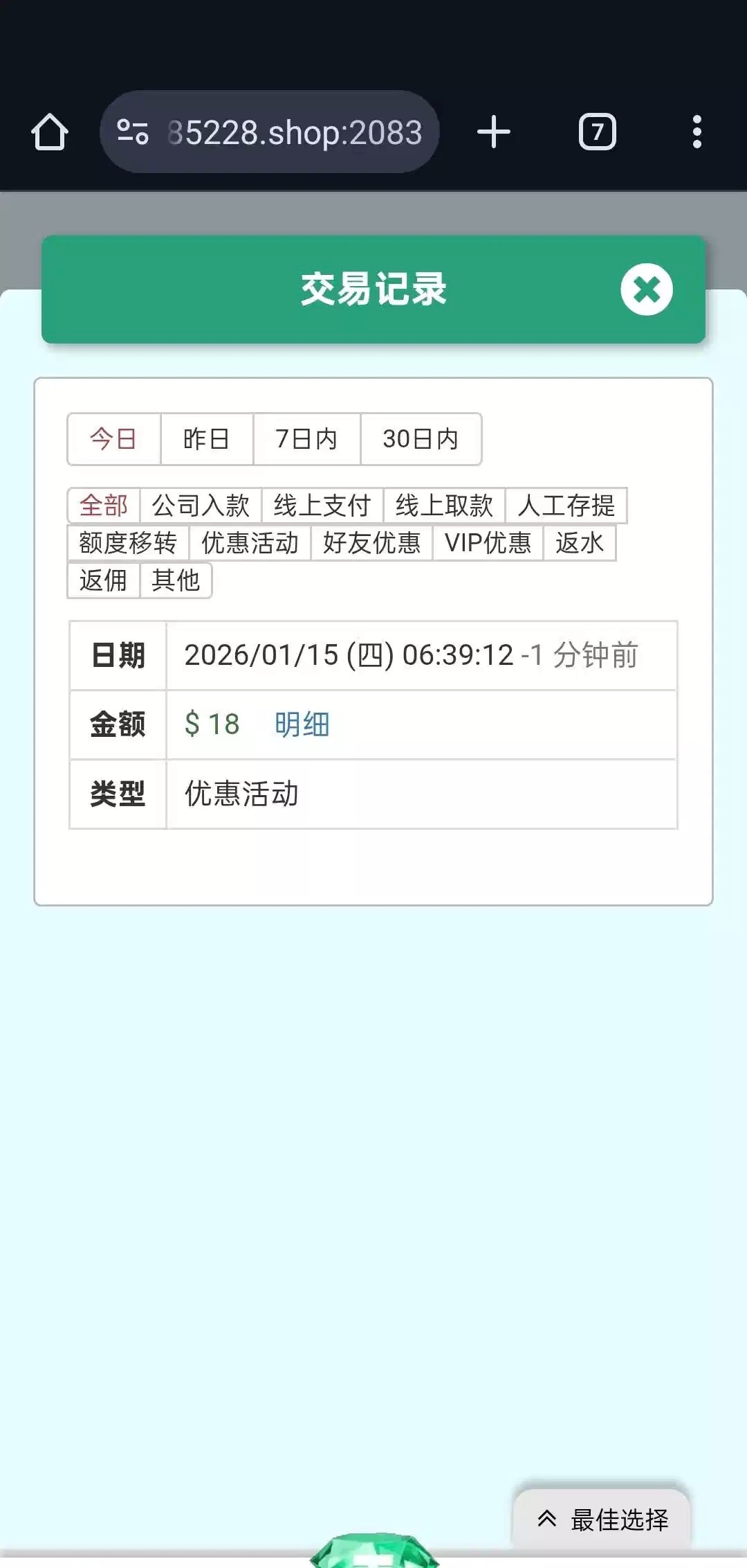 有账号登录后找客服申请回访彩金。就提供了账号也没查手机 送了18彩金  满188提款 只能指定钱包提款。(我因为有账号发的是回访彩金,客服回复的是注册彩金)老哥们碰瓷看着来。