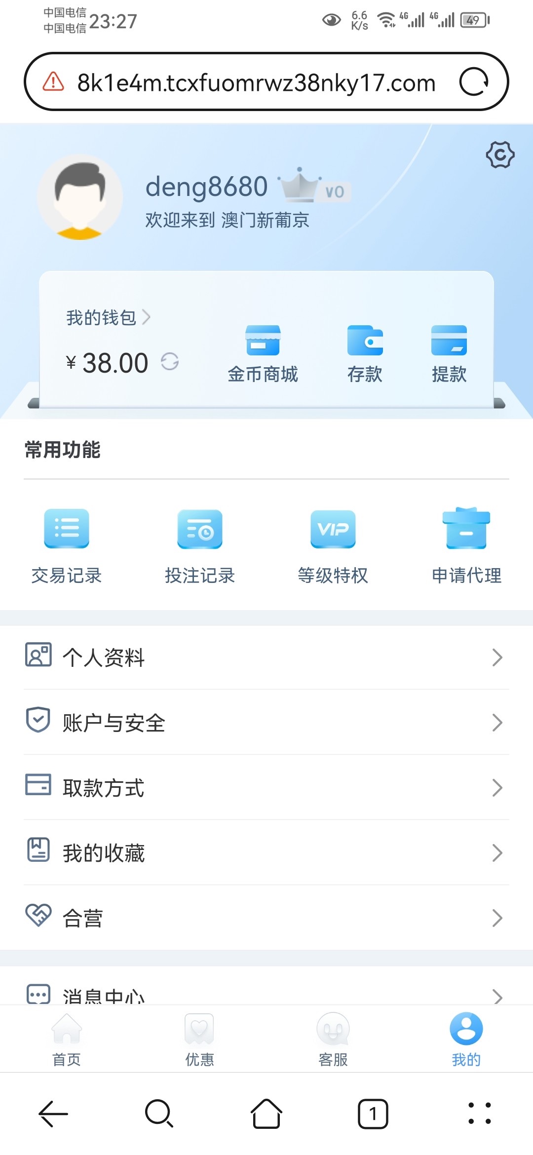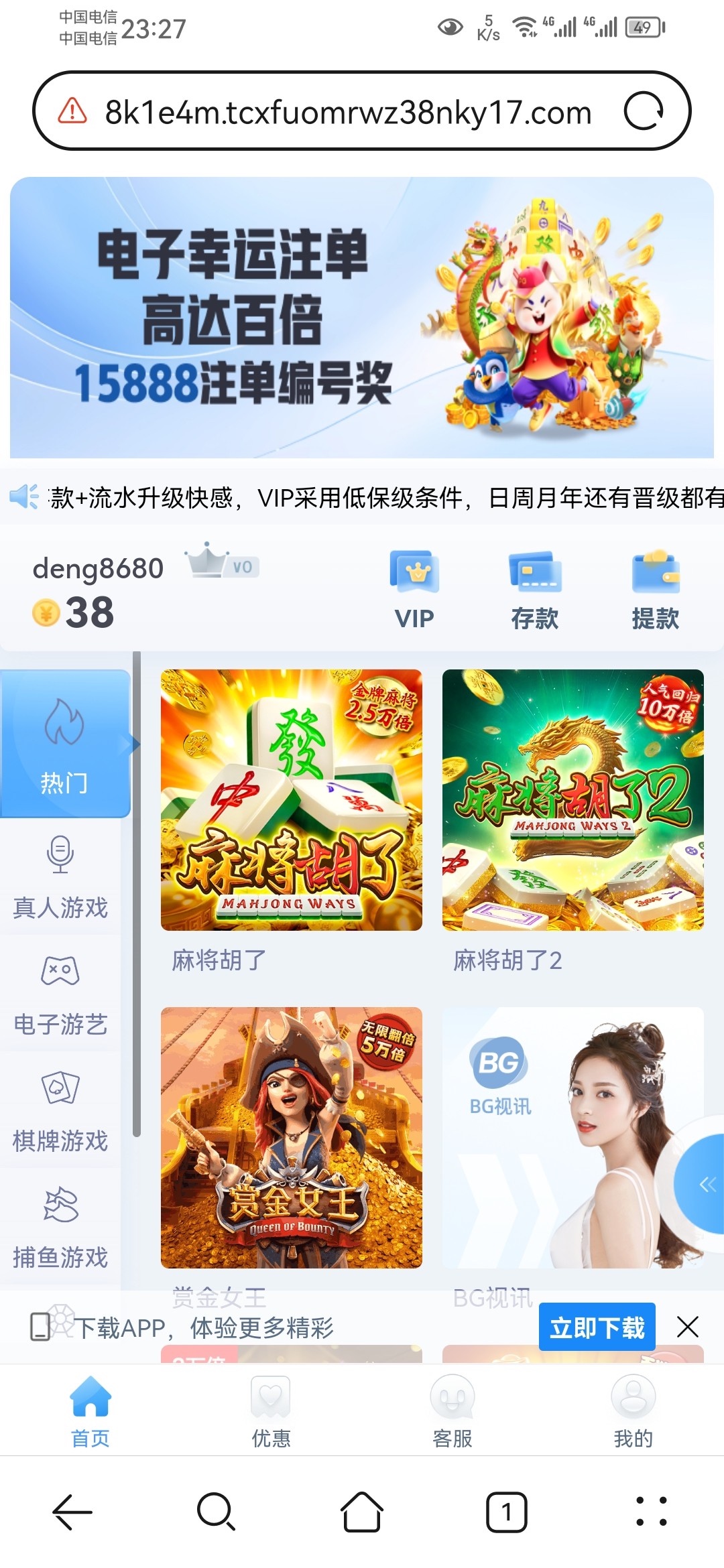 电话彩金不知道什么时候注册了账号刚打电话来送了38有兴趣的可以去碰瓷看看网址3787.APP