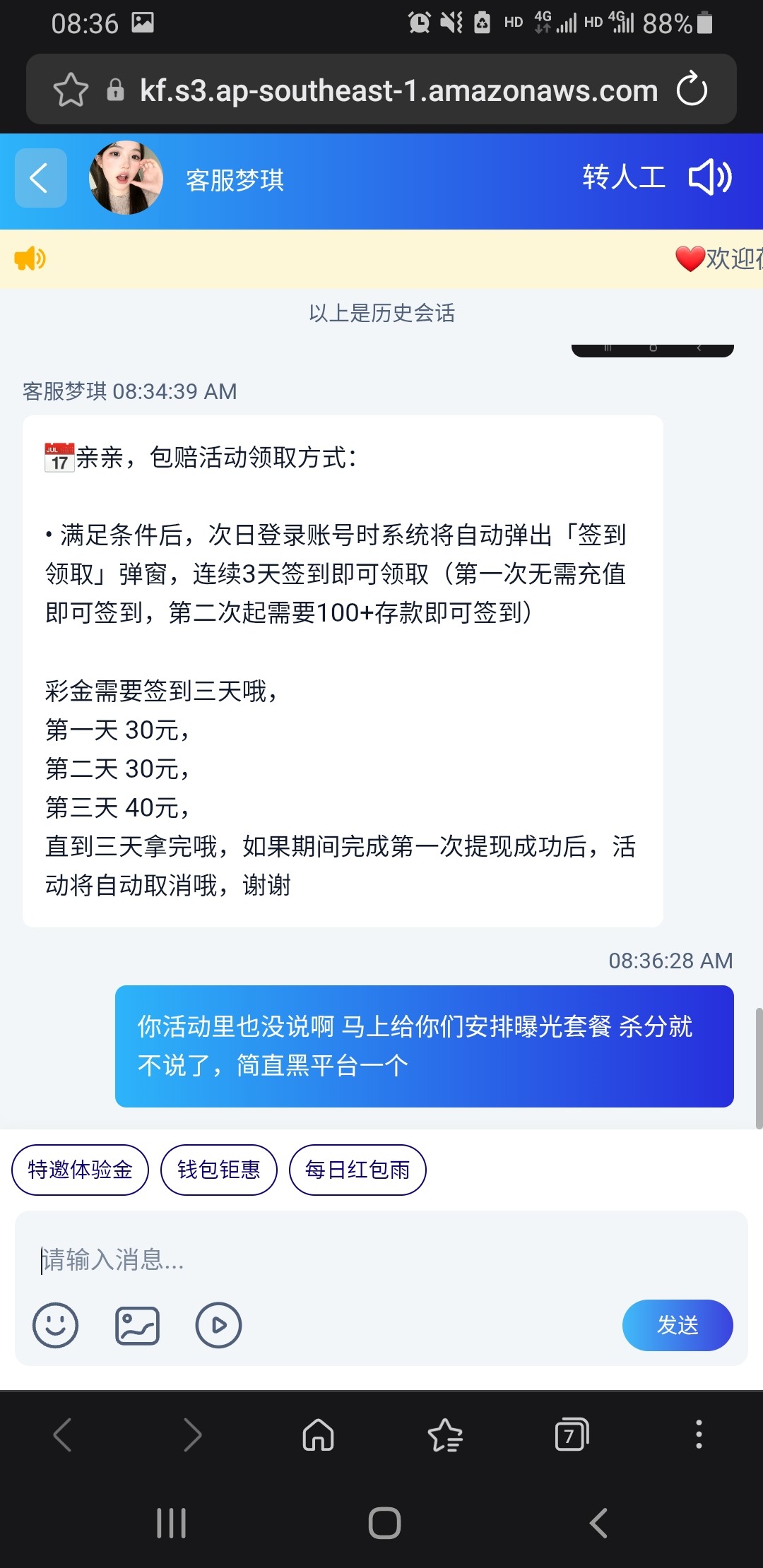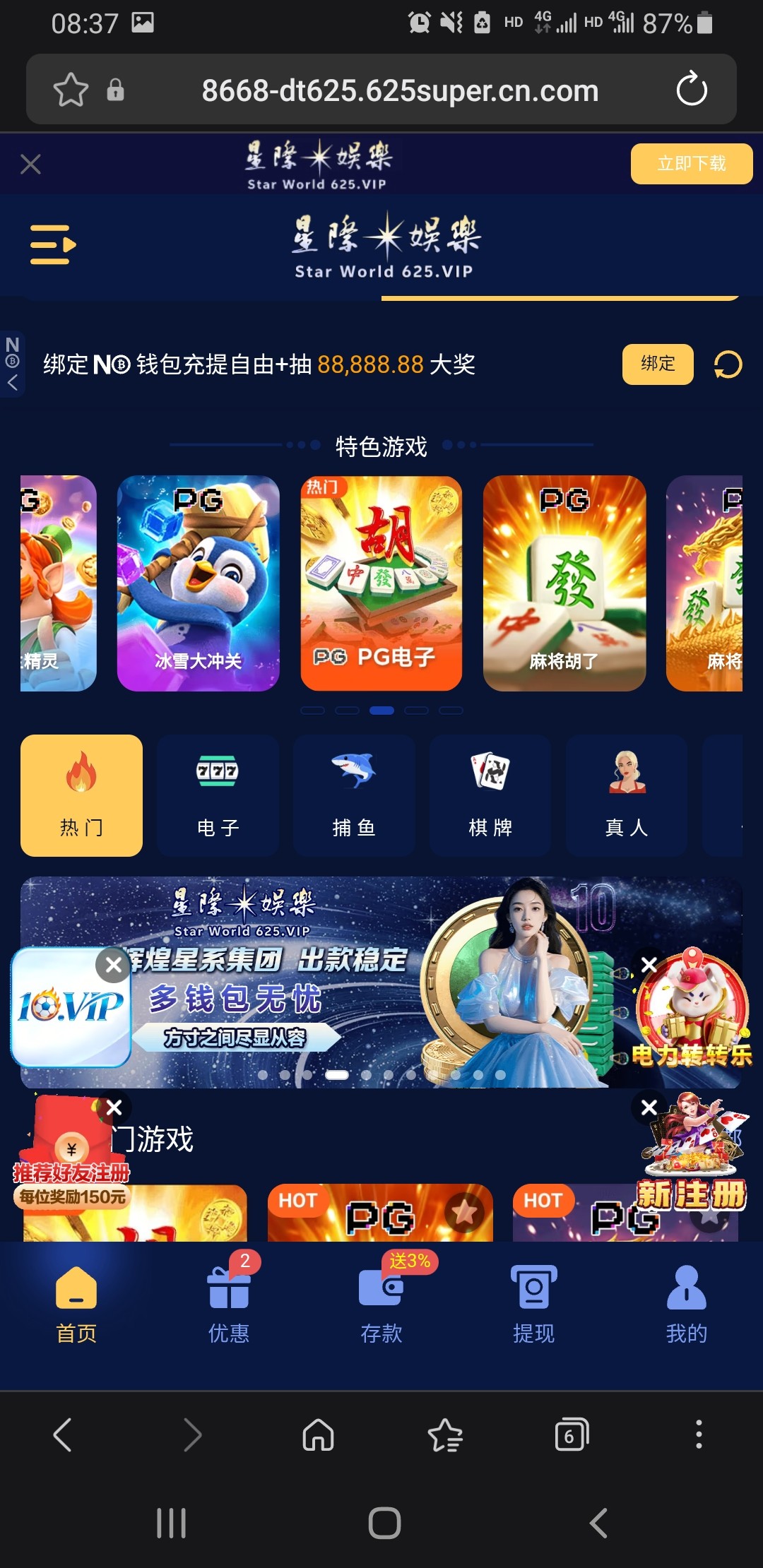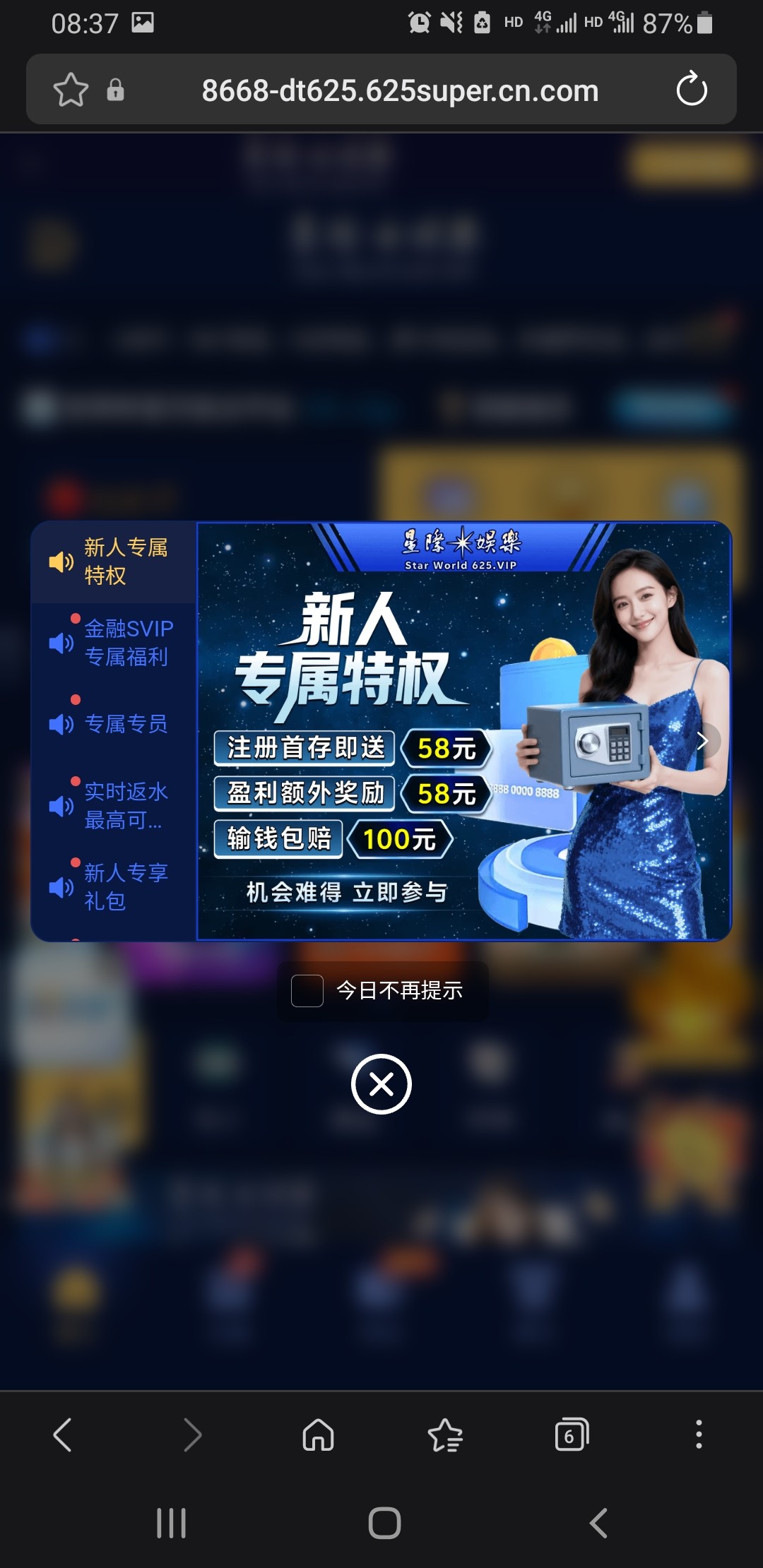 大家收到星际625短信或者电话的活动里100+58一水的千万别去玩,这b台子完全代码台,控的死死的 身边好几个人玩也才一个人打出来 而且那人也才赚他几十 杀分就不说了 活动里新人包赔100 分三天领  也只能领第一天30 后面再领就要充值100  老哥们 千万别给这b台充值送钱了