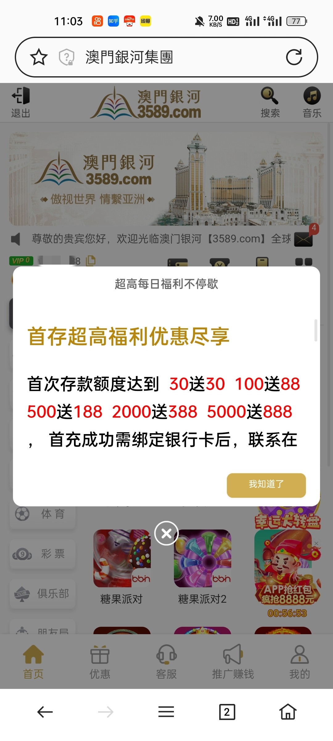刚接到的电话,明明注册送188,然后又说是代理会员注册,让参加首存,分期送,感觉套路多多