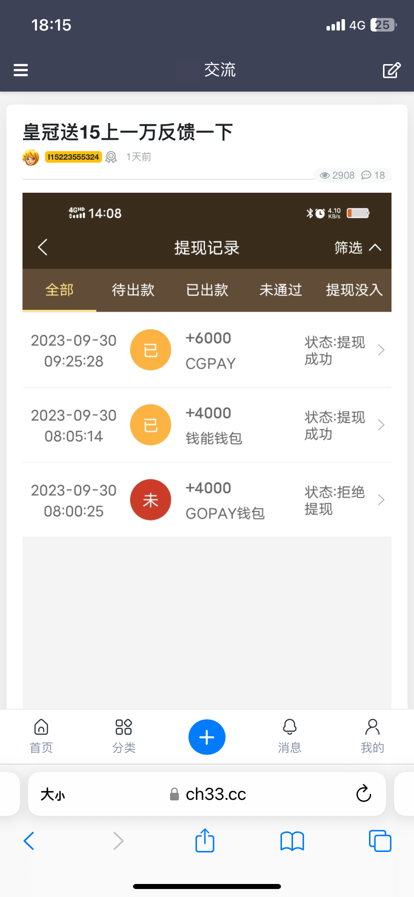 领了3块红包提了351,在存263提了583