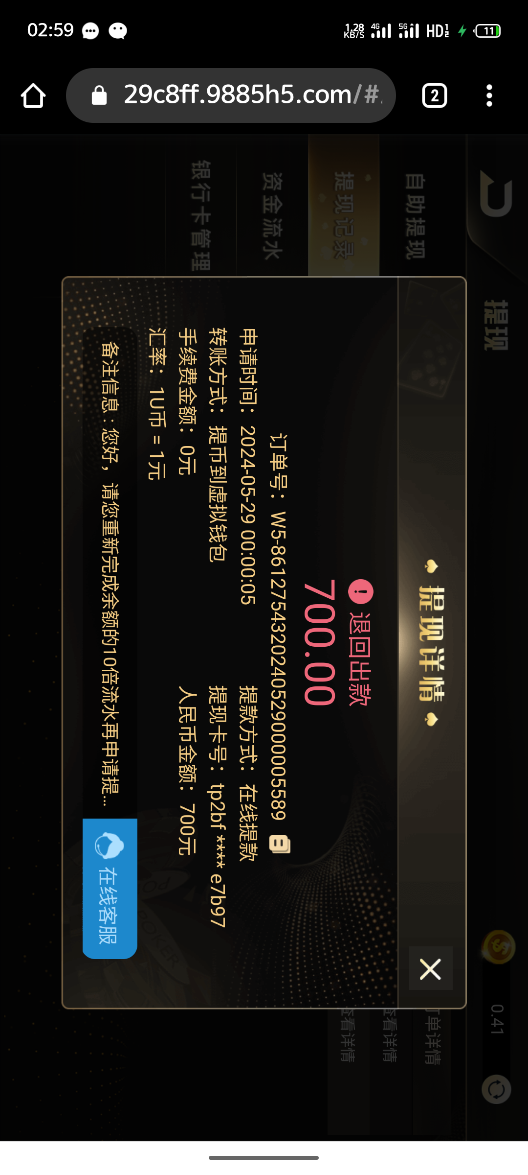 冯哥 我之前充200买刮刮卡 也中了一万 被黑了