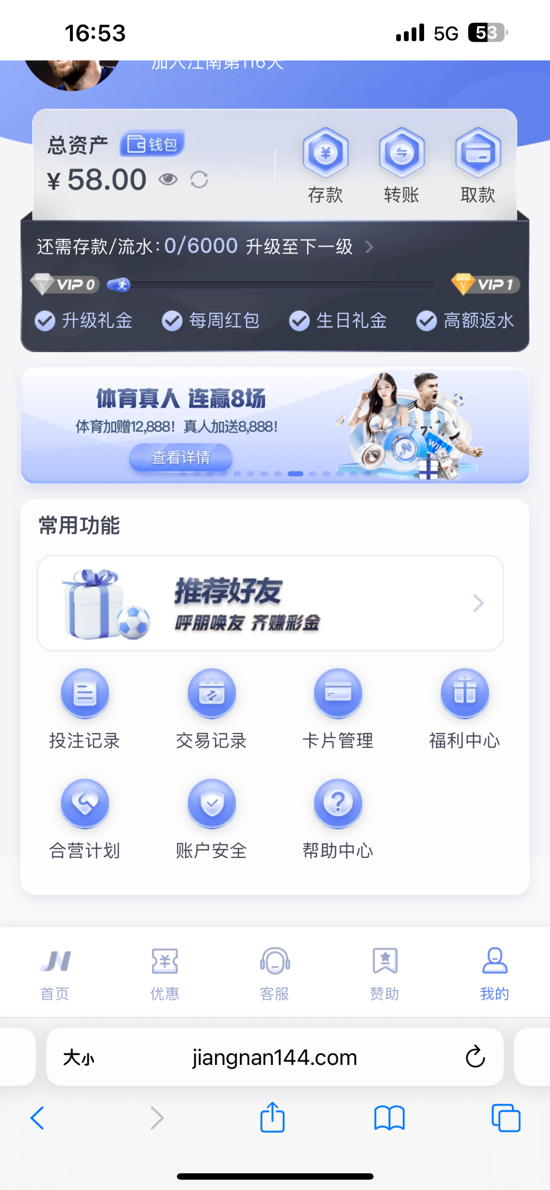 58倒是送了,打到600故意输到100提现号就被封了,全程打的体育