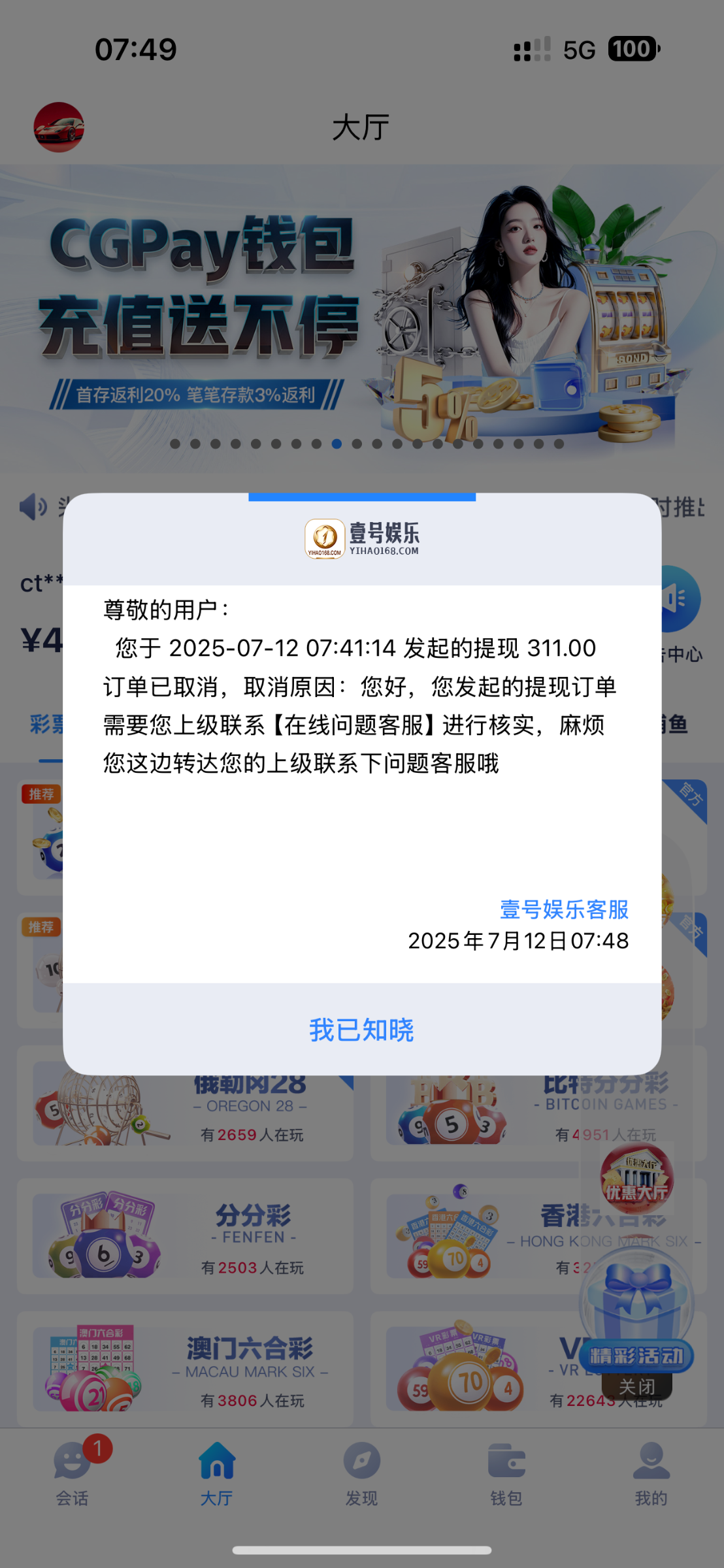 白菜 提现没到的等通知 现在等客服回我