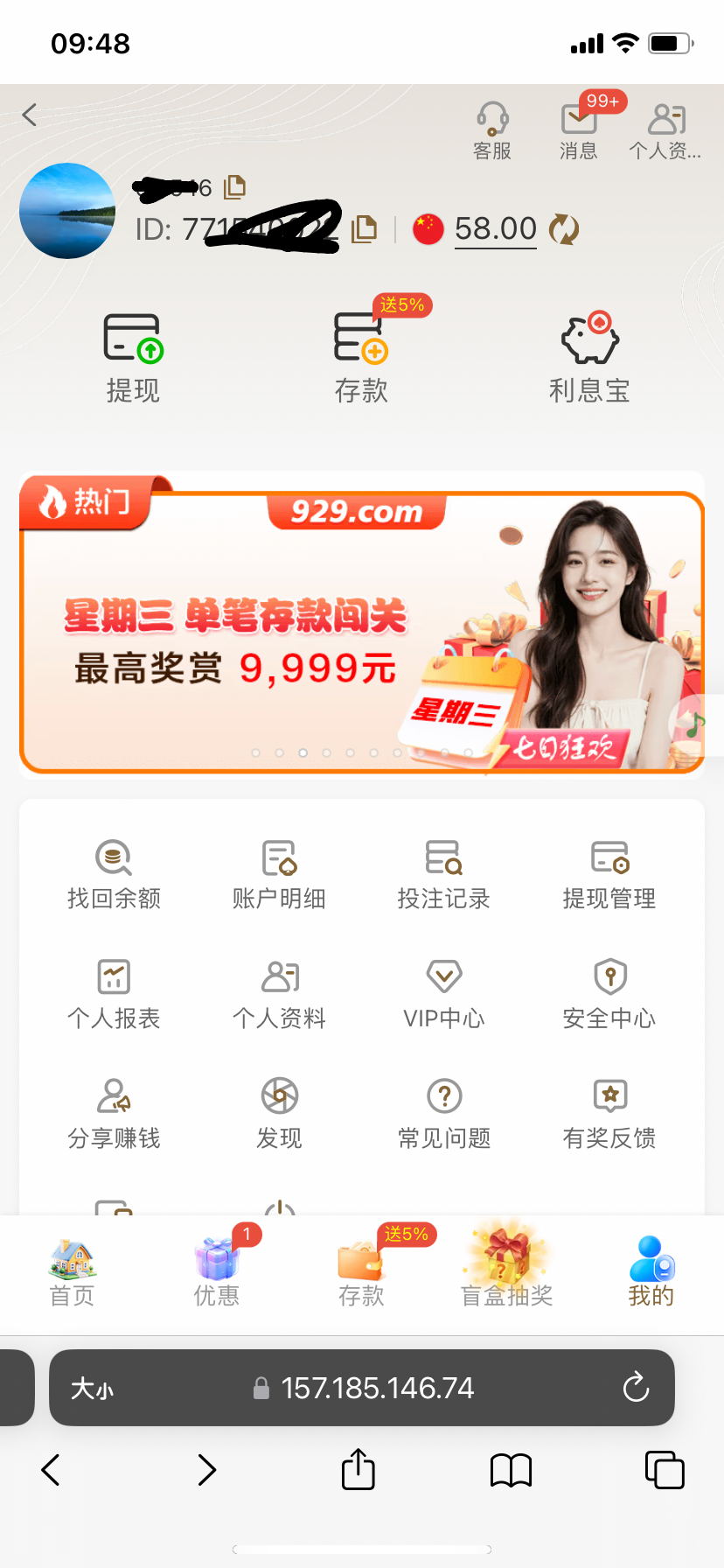 没充值过,不知道什么时候注册的,登陆有58,有号的去看看, 打开网址有三个台,929有58 ,没有的可以碰碰特邀(出款自测)