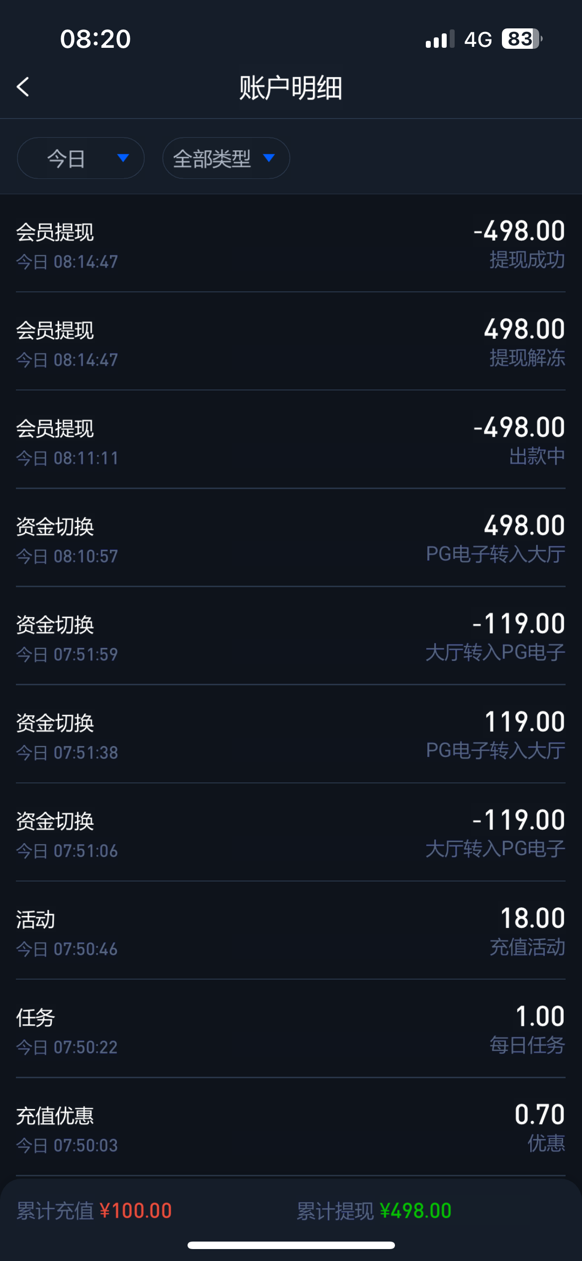 我笑了,充600 一共提现100,几个小时不到账问客服就是让等,一说取消提现就玩消失,人才
